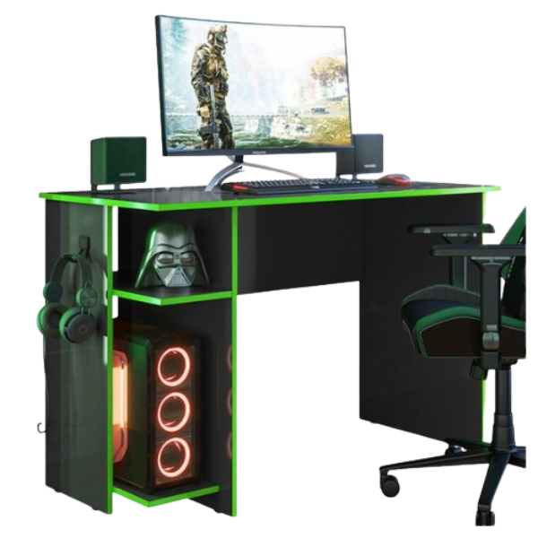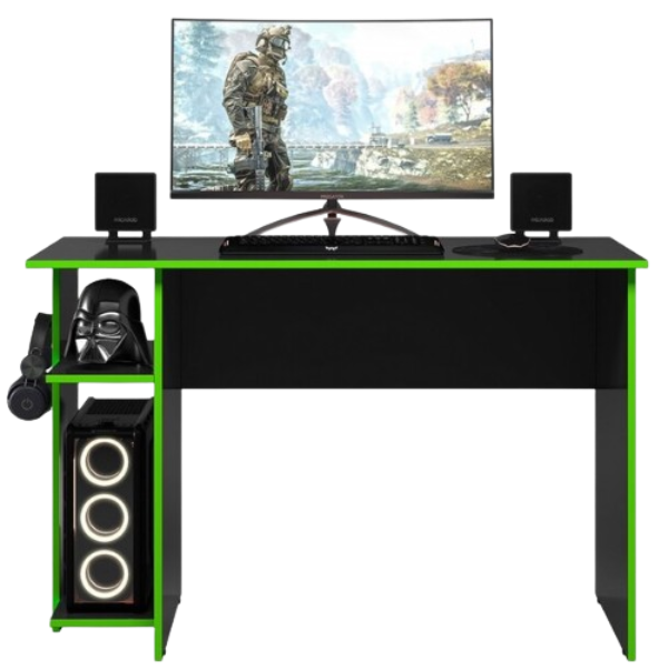Mesa Qmovi Escritório e Gamer Preto Fosco/ Verde