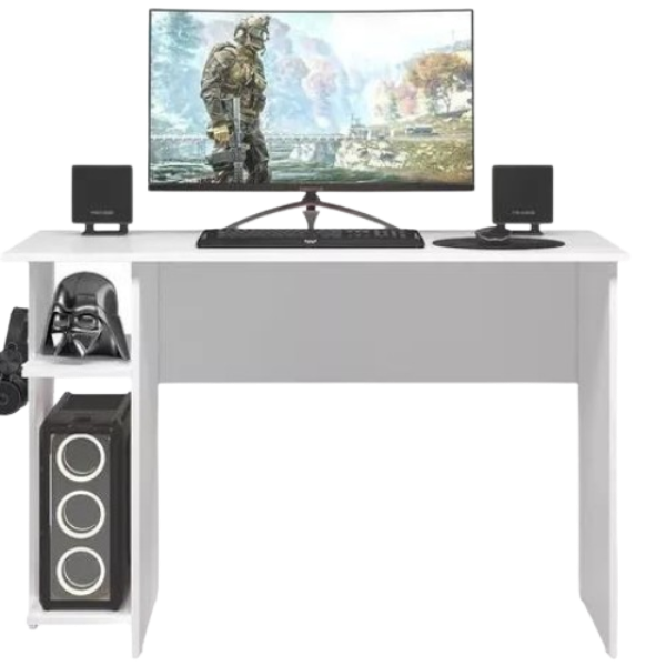 Mesa Qmovi p/ Escritório e Gamer - Branco/Branco