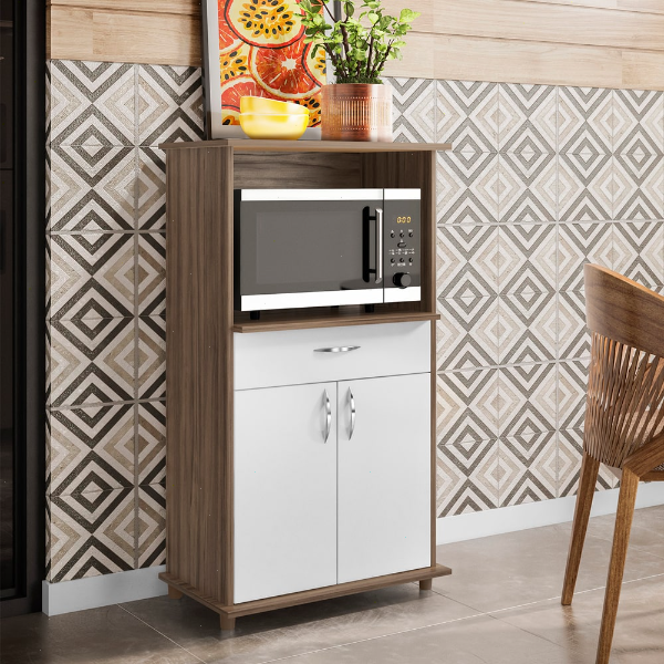 Multiuso para Forno 2 Portas 1 Gaveta NT 3070 Notável - Nogal/Branco vai deixar sua cozinha ainda mais completa, moderna e sofisticada! Espaço funcional Com duas portas e uma gaveta ele possui espaço ideal para você guardar e organizar todos os seus utensílios e ou alimentos. Além disso, ele possui um nicho perfeito para fornos elétricos. Qualidade em primeiro lugar Com estrutura toda em MDP, material de alta qualidade e resistência, proveniente de madeira de reflorestamento, com acabamento em pintura UV, que garante ainda mais durabilidade ao produto.