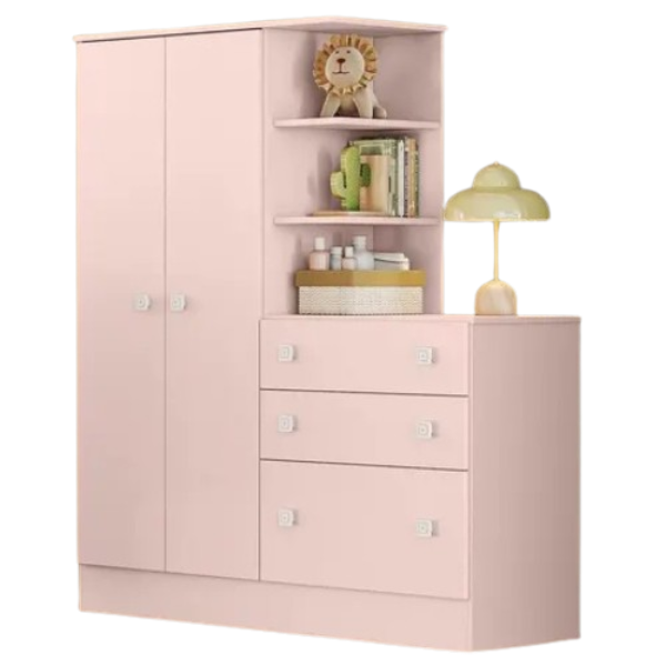 Roupeiro c/ Cômoda Doce Sonho Rosa Acetinado